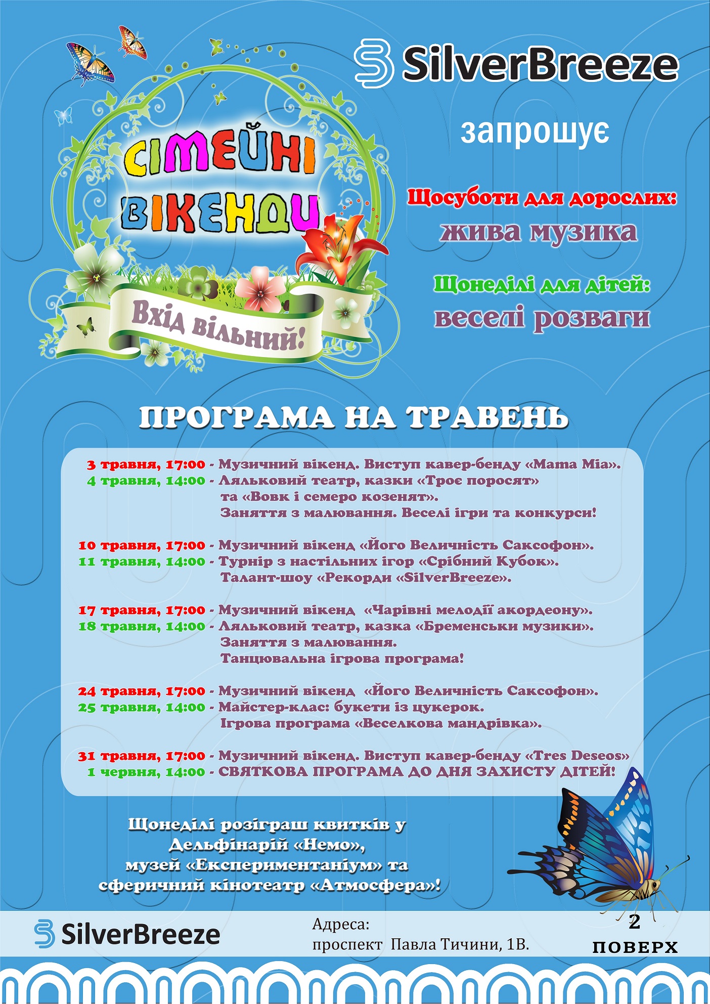 Щонеділі для дітей - веселі розваги а також розіграші квитків у Дельфінарій "Немо", музей "Експериментаніум" та сферичний кінотеатр "Атмосфера"!